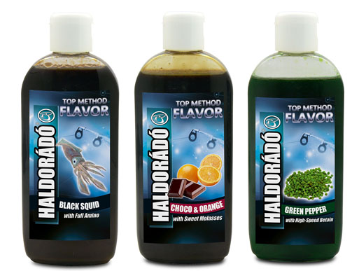 Aromele Top Method Flavor, disponibile in trei variante, sunt gandite pentru a fi folosite la cresterea atractivitatii nadei din momitoarele ce ascund si carligul. Se preteaza si la aditivarea momeliilor, dar rolul lor principal ramane cel de atractie.